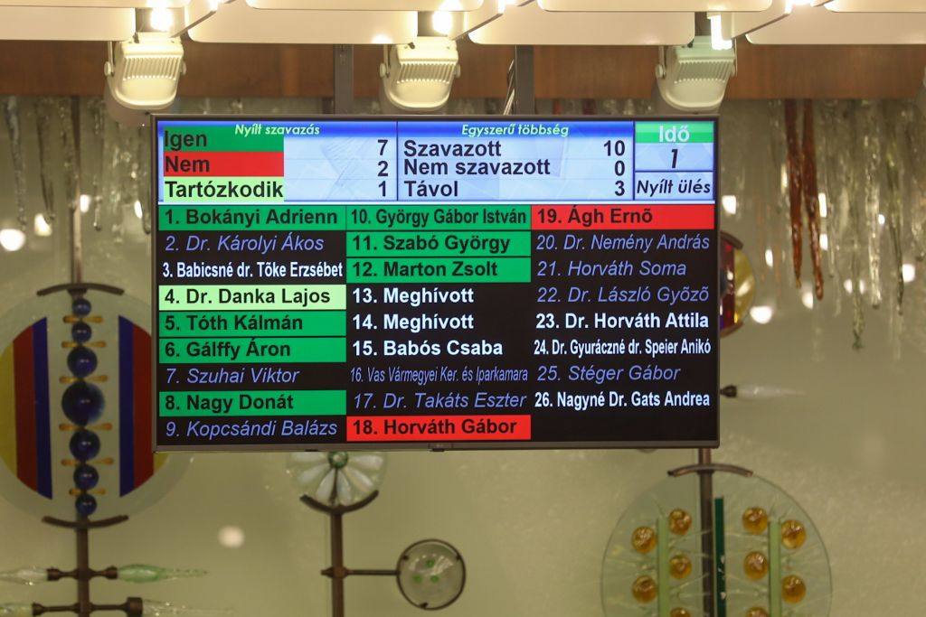 A gazdasági és jogi bizottság többsége megszavazta a határozati javaslatot, amit Bokányi Adrienn módosított: a bizottság felhatalmazta a Szova Nzrt vezérigazgatóját, hogy a liciteljáráson nyertes ajánlattevővel az adásvételi szerződést megkösse. Igennel szavazott Bokányi Adrienn, Tóth Kálmán, Gálffy Áron, Nagy Donát, György Gábor István, Szabó György és Marton Zsolt. Tartózkodott Danka Lajos, nemet nyomott Ágh Ernő és Horváth Gábor.
