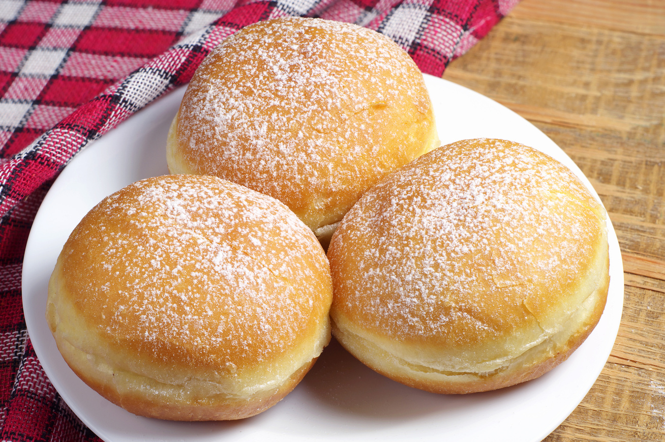 A fánkot baracklekvárral vagy csokoládéöntettel kínáljuk.