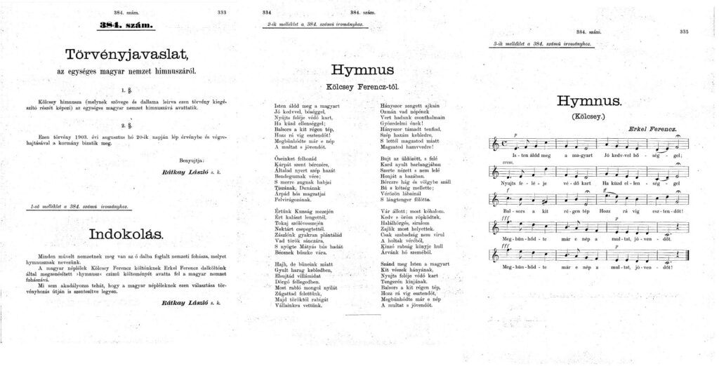 1844. július 2-án pedig az Erkel Ferenc által megzenésített pályamű bemutatójára is sor került a pesti Nemzeti Színházban. Bármennyire is meglepő: tulajdonképpen csak Alkotmányunkba 1989-ben(!) bekerülve vált hivatalosan nemzeti himnuszunkká, pedig már 1903-ban is született erről parlamenti beadvány. Ám a magyar nép közmegegyezése már több, mint száz éve nemzeti imádsággá tette.