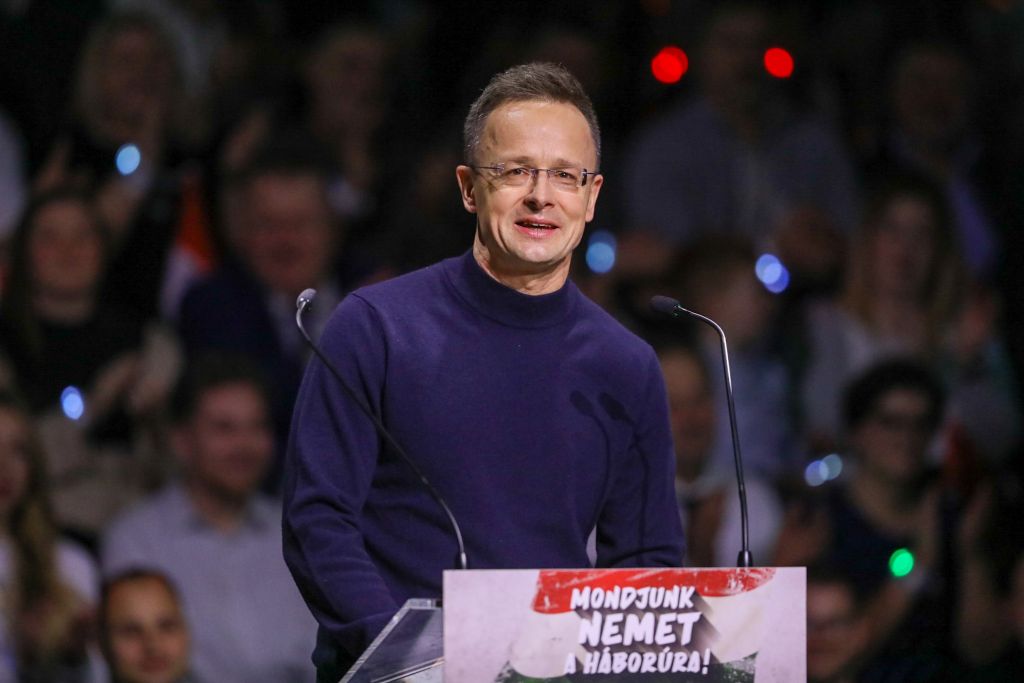 Szijjártó Péter, külgazdasági és külügyminiszter is felszólalt a háborúellenes gyűlésen. Hangos taps és éljenzés közepette kezdte el beszédét. – Ha a századfordulón, 26 évvel ezelőtt közvélemény-kutatást tartottak volna arról, hogy mi jellemzi majd a 21-ik század első negyedét, senki nem találta volna el a helyes megoldást. Annyi válság, mint amennyi ez elmúlt 25 évben keserítette meg az emberiség életét, korábban példátlannak számított volna – mondta.